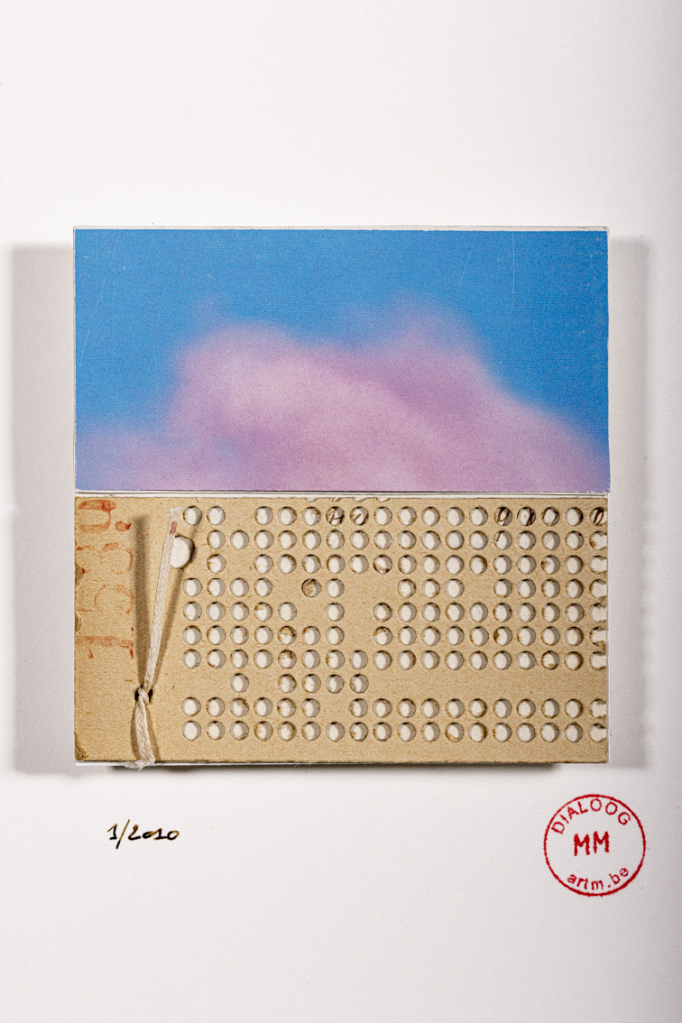A turning point has been the development of the series of Dialogues from 2010 onwards. Dialogues (2010-2020) was a large series of small art collages (+3500). They were meant to be a collection of ‘artefacts’ balancing between time and space, the past and the future, nature and culture. The material that is used was never meant to be unique; it is often blurry, fragmentary and abstract. The original works had a strict 9x9cm format but evolved slowly towards the international standard of an ID- or creditcard. The following series evolved towards either two pieces linked to each other as ‘dogtags’ or individual ID-cards, with a whole range of variations (2014-2017). The dialogue continued between two of those cards, some of them revealing both sides of the card (e.g. the Double sided dialogues in 2018). The 2019 “X”-series brings single Dialogues to a broader and secure environment but nevertheless in a polorazing balance.