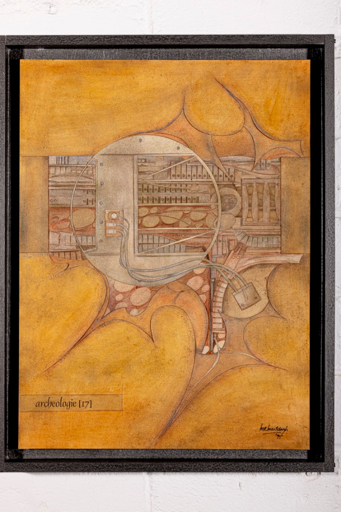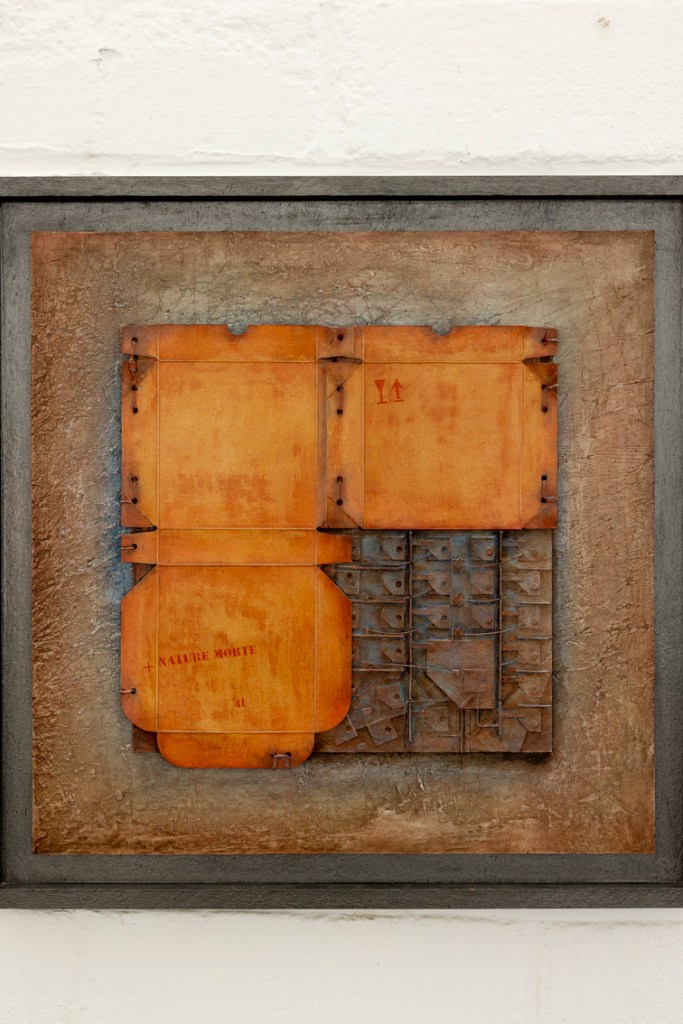 From 2020 onwards a new series, ‘Community’, explores a more elaborate interaction between the ID’s. In the ‘Quarantaine’ project (2020) this is visible in the ‘mouth caps’, the coronaproof ‘bubbles’ and the big ‘labo’-setting. The 2022 series goes back to the essence, combining assemblage and collage (the ID-cards) in a very diverse environment but nevertheless small format (approx. 25×25 cm, 10×10 inches). There is tension on the elements (the ID-card, the connection via ropes/cables), the structure and the colors. The result of this expedition is a solo-exhibition of more than 150 works in October 2023.