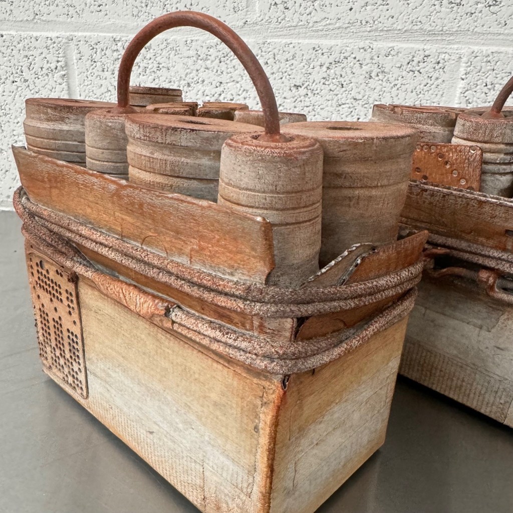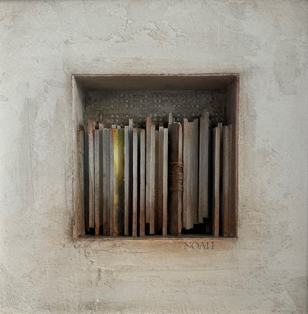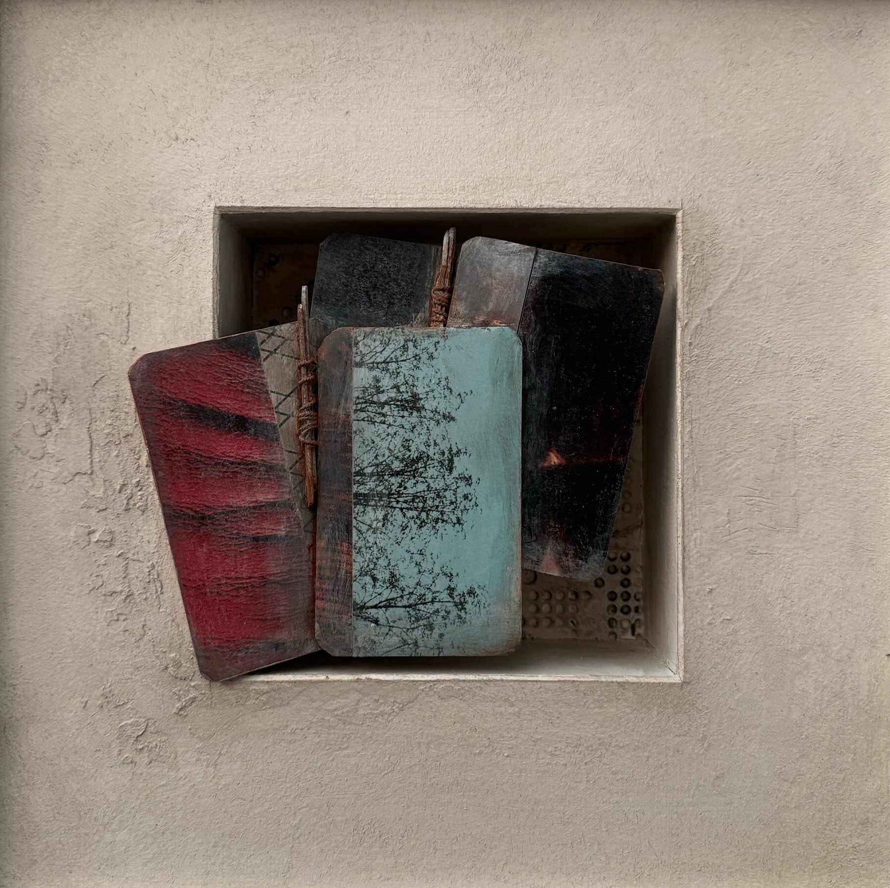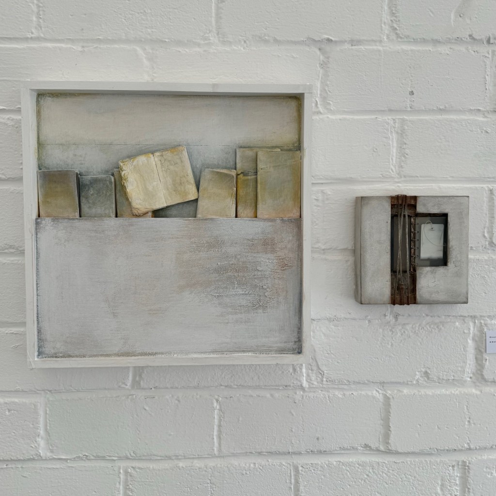 De werken dateren van 2024. Gebruikte techniek: mixed media (assemblage, collage, acryl).