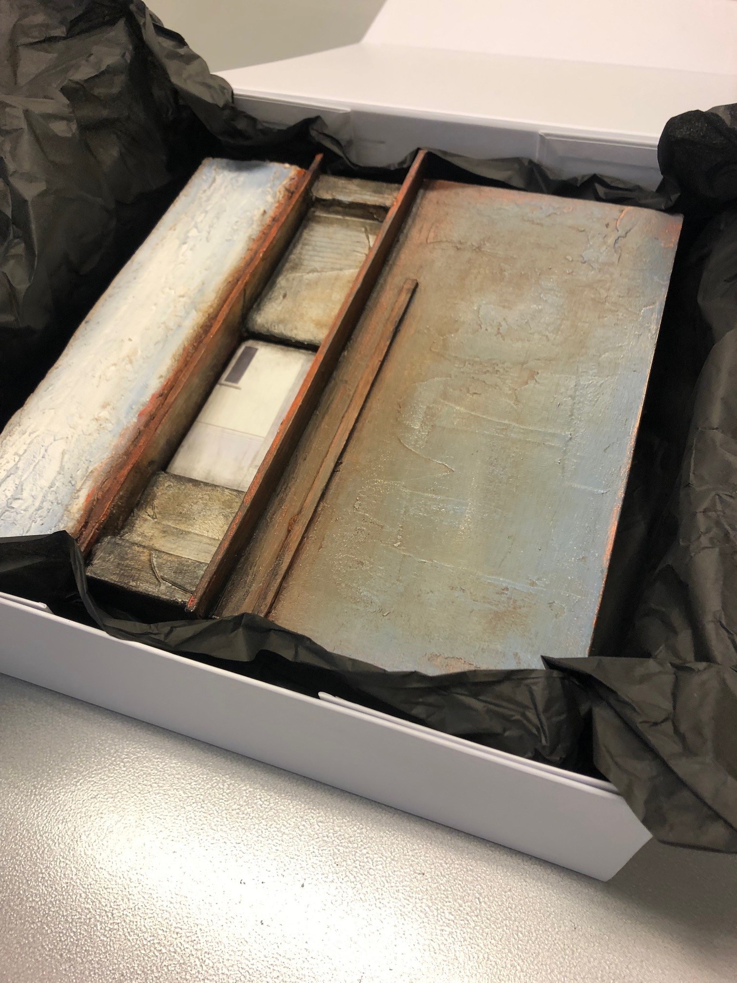 Kleine werken van Marc Mestdagh worden voorzien van een mooie geschenkverpakking.